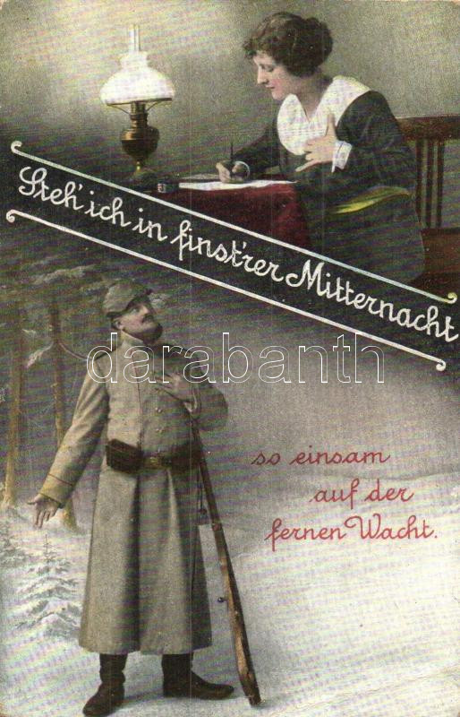 'Stech' ich in finst'rer Mitternacht' / WWI military postcard, couple separated by the war, romantic (EB)