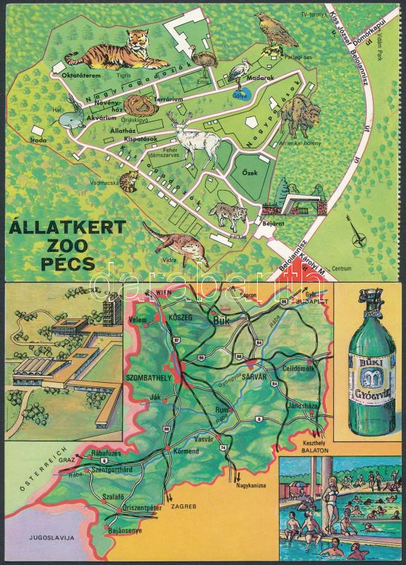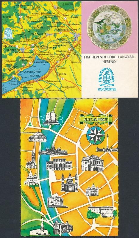Description: 7 db MODERN főként megíratlan magyar térképes reklámlap, Herendi porcelángyár, Pécsi Állatkert, Sopron, Budapest / 7 MODERN mostly unused Hungarian maps, advertisement cards, porcelain manufacture, zoo, cities