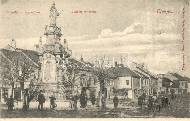 https://www.darabanth.com/en/285-Online-auction/285.0/Postcards/Slovakia~200007/Eperjes-Presov-Fo-utca-Caraffa-vesztohely-Szentharomsag-szobor-main-street-Caraffas-scaf~II1407239