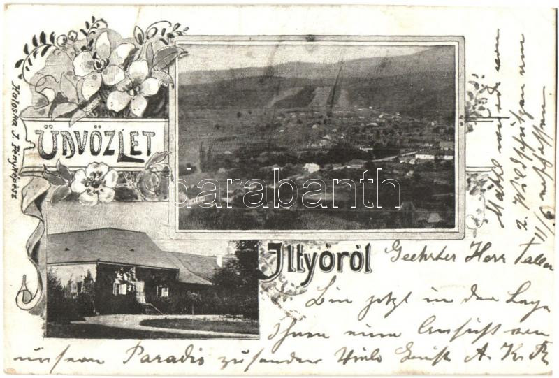 1899 Iltő, Iltyó, Ilteu; Látkép, kúria, Haloska J. fényképész / general view, villa, floral (EK)