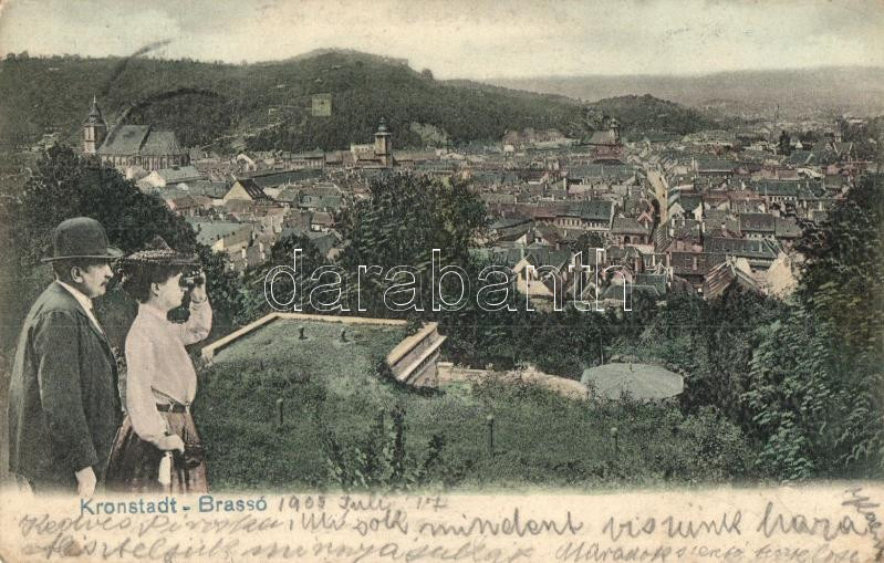 Brassó, Kronstadt, Brasov; látkép, pár távcsővel / panorama, couple with binoculars (Rb)
