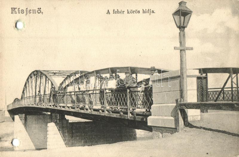 Kisjenő, Chisineu-Cris; Fehér-Kőrös hídja, kiadja Messzer Lipót / bridge (lyukak / holes)