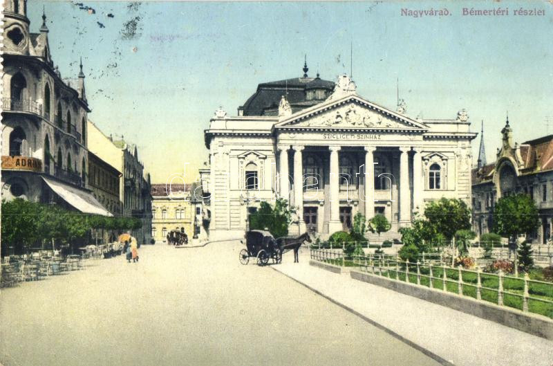 Nagyvárad, Oradea; Bémer tér, Szigligeti színház, kiadja Vidor Manó / square, theatre (EK)