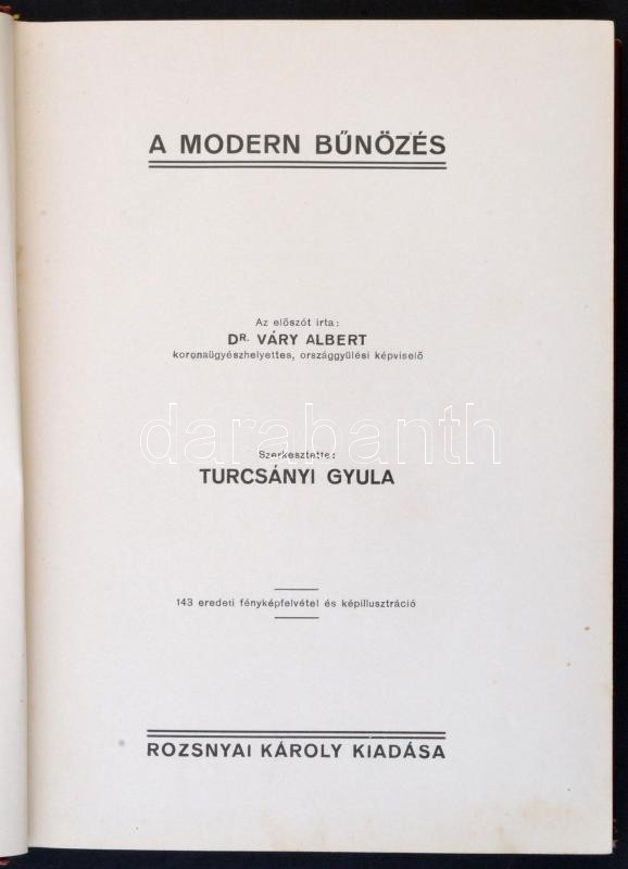 A modern bűnözés II. Az előszót írta Dr. Váry Albert. Szerk.: Turcsány... https://www.darabanth.com/en/286-Online-auction/286.0/Books/Books-Other-rarities~44/A-modern-bunozes-II-Az-eloszot-irta-Dr-Vary-Albert-Szerk-Turcsanyi-Gyula-Bp-1929-~II1461538