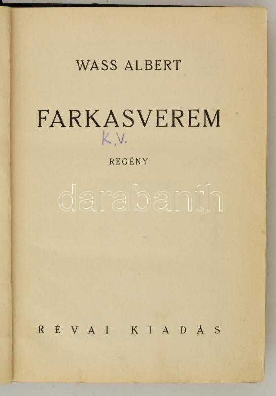 https://www.darabanth.com/en/286-Online-auction/286.0/Books/Books-Other-rarities~44/Wass-Albert-Farkasverem-Bp-1935-Revai-Kopott-serult-gerincu-vaszonkotesben~II1496848