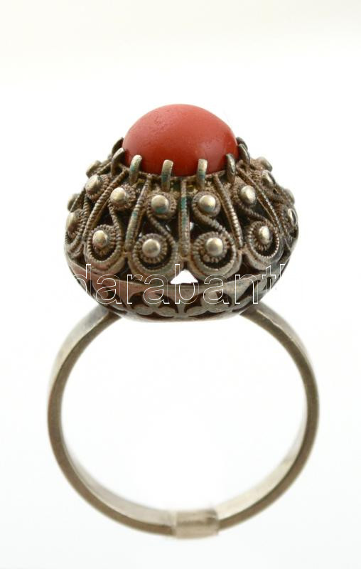Díszes ezüst (Ag.) gyűrű, kő berakással, jelzett, méret: 52, bruttó 5 ...