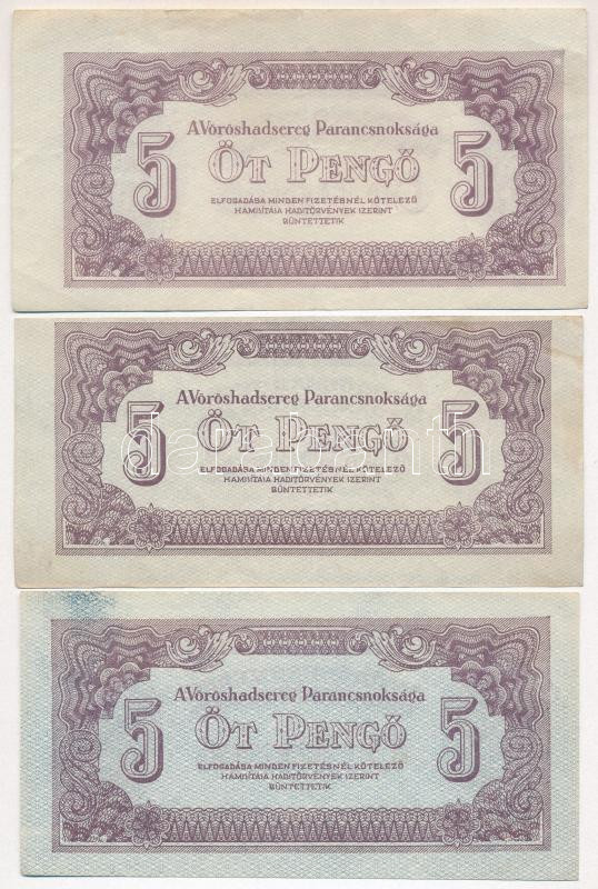 1944. 5P (3x) félrecsúszott nyomat, vágáshiba, festékhiba T:I--III apr...