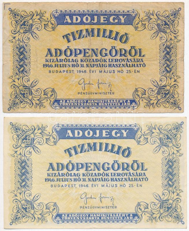 1946. 10.000.000AP (2x) egyik fehér, másik sárgás papíron, egyik eltol...