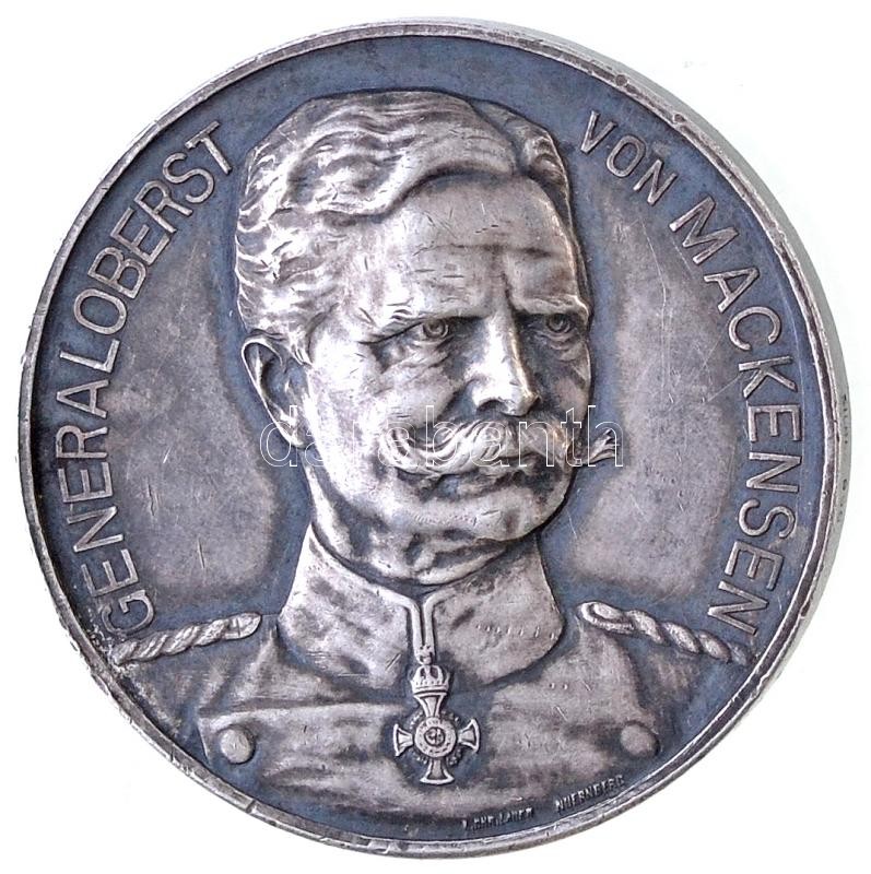 German Empire 1915. "GENERALOBERST VON MACKENSEN / IM VERTRAUEN AUF GOTT, DEUTSCHLANDS GERECHTE SACHE UND DEN BEWAHRTEN KRIEGSREICHEN MANNESWERT DER MIT ANVERTRAUTEN HERRLCIHEN TRUPPEN!" Ag medallion marked on edge, with "DHR LAUFR NÜRNBERG" makers mark (18g/0.890/33mm) C:XF edge error, ding