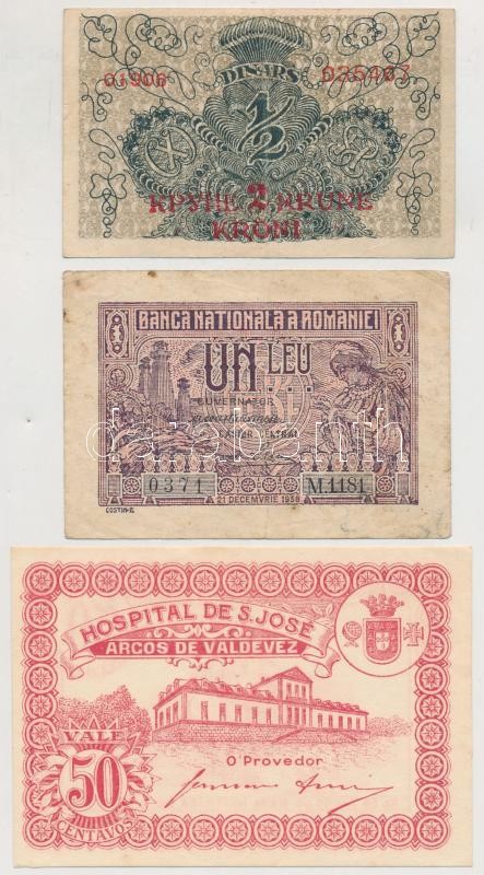 6pcs of various banknotes, including China 1940. 10 Yüan, Kingdom of Serbs, Croats and Slovenes 1919. 1/2 Dinara with "20 Kronen" overprint C:AU-VG