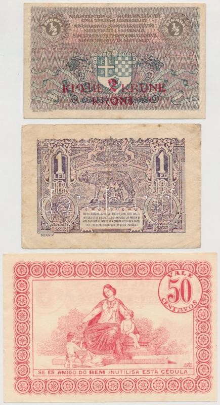 Description: 6db-os vegyes külföldi bankjegy tétel, közte Kína 1940. 10Y, Szerb-Horvát-Szlován Királyság 1919. 1/2D "2K" felülbélyegzéssel T:I--III-