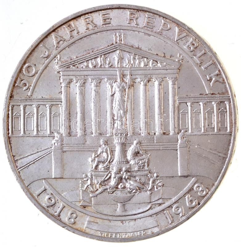 Ausztria 1968. 50Sch Ag "50 éves a Köztársaság" T:1-,2 Austria 1968. 50 Schilling Ag "50th Anniversary of the Republic" C:AU,XF