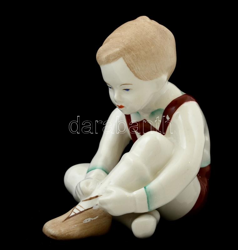 Aquincumi cipőfűző kisfiú, kézzel festett, jelzett, hibátlan, m: 11 cm