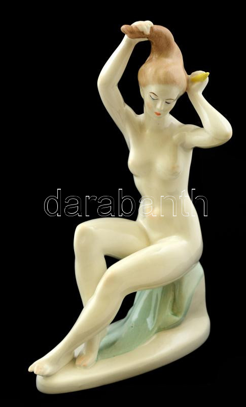 Aquincumi fésülködő akt, kézzel festett, jelzett, hibátlan, m:22 cm