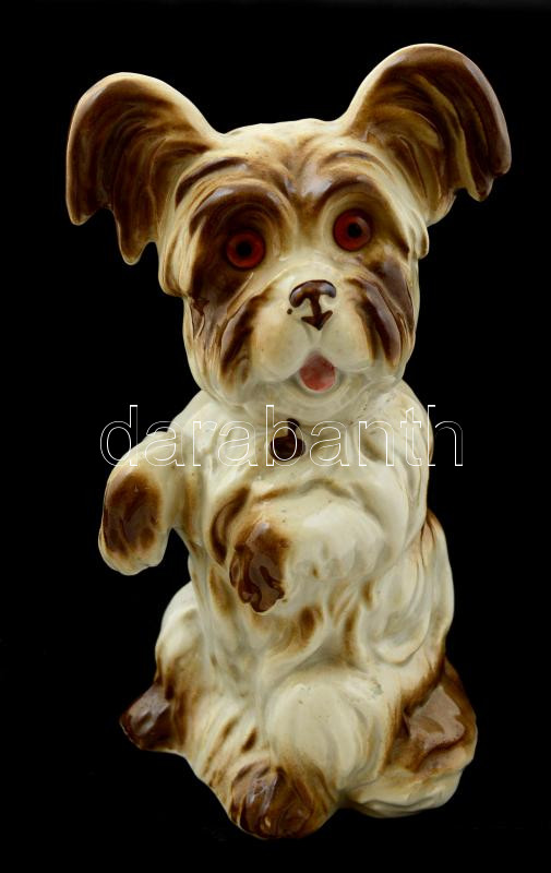 Kutyus átfúrt porelán figura, kézzel festett, apró máz hibákkal, m:19 cm