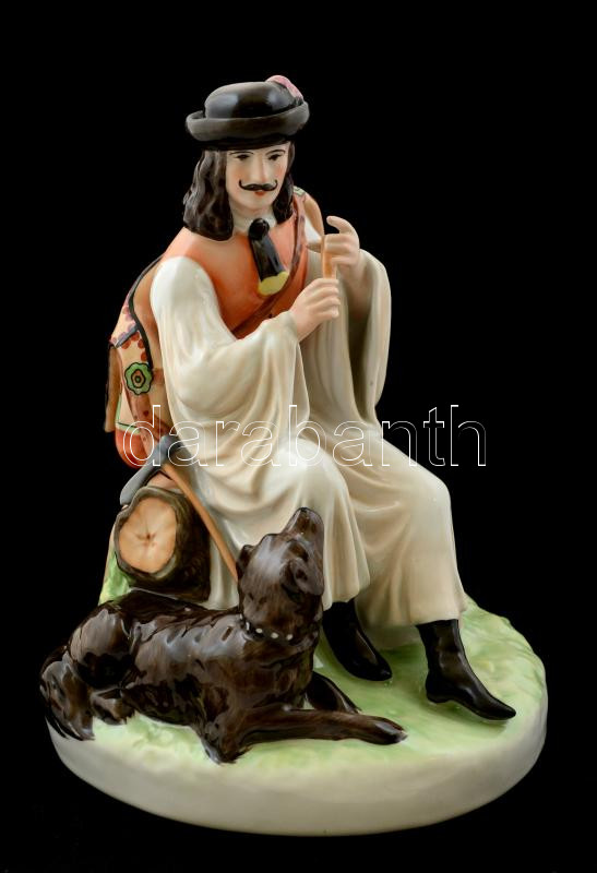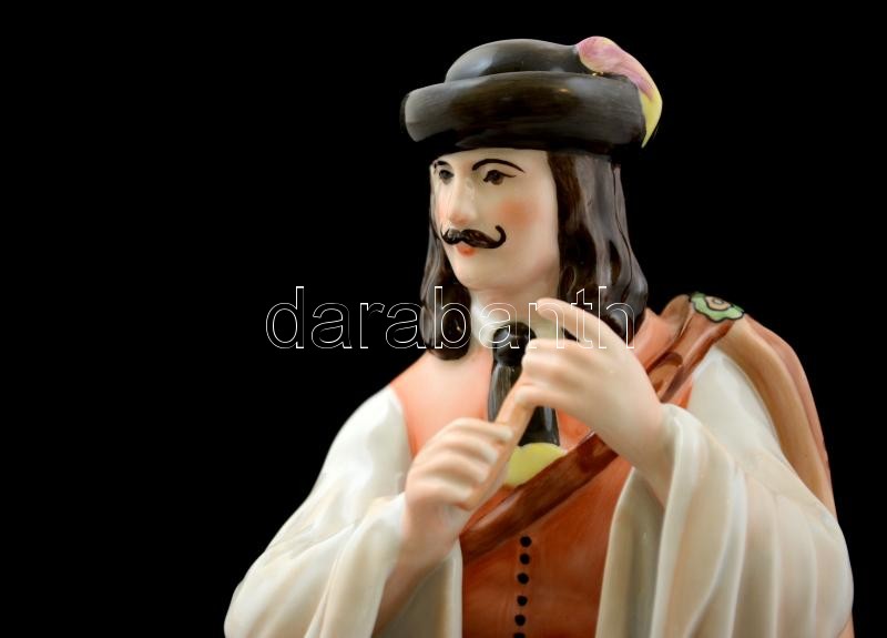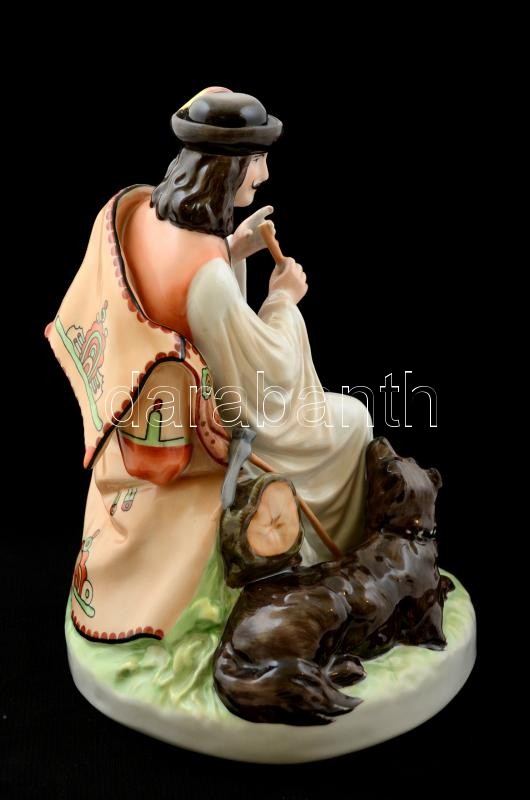 Zsolnay furulyázó pásztor, kézzel festett, jelzett, furulya letört, m:...