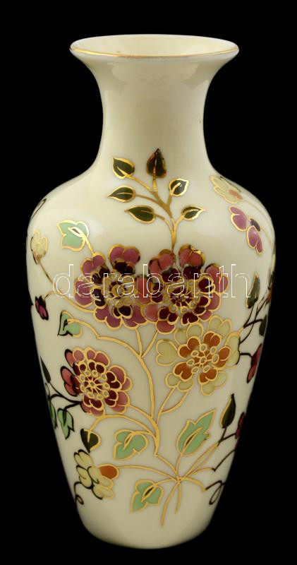Zsolnay pillangó mintás váza, kézzel festett, jelzett, hibátlan, m:15 cm