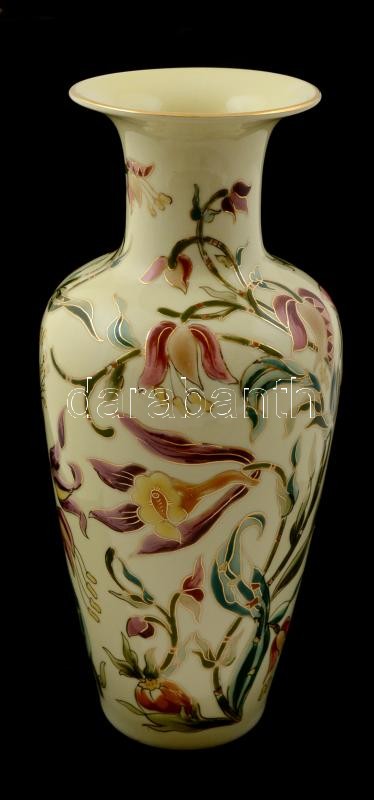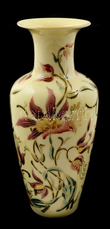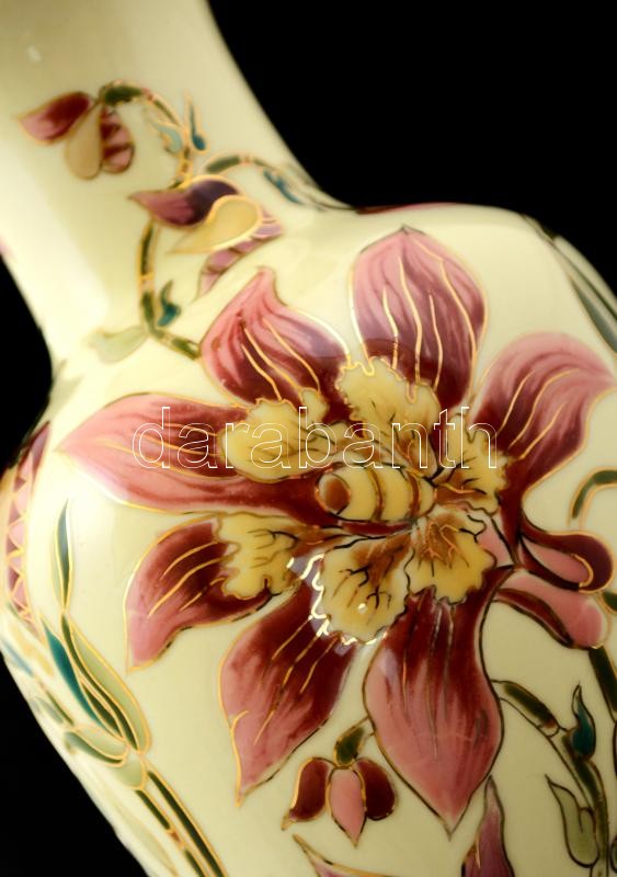 Zsolnay virág mintás váza, kézzel festett, jelzett, hibátlan, m: 26 cm