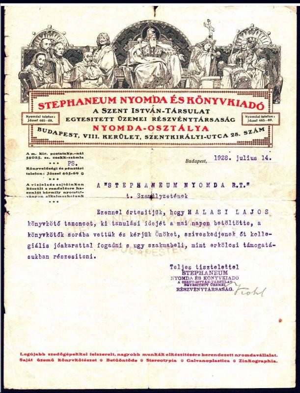 1928 Stephaneum Nyomda és Könyvkiadó díszes fejléces számla