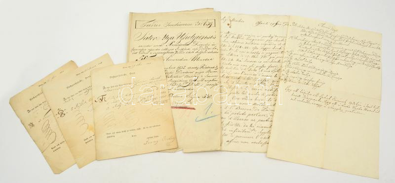 cca 1790 Okmányok: kiállított katona személy öltözetének leírása, plusz nyugták, levelek összesen 6 db, benne egy olasz nyelvű