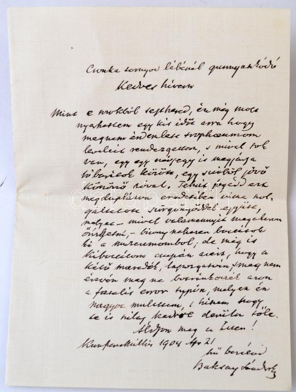 1904 Baksay Sándor (1832-1915) református püspök, szépíró, költő, műfo... https://www.darabanth.com/en/286-Online-auction/286.0/Other-collectibles/Historical-documents-manuscripts~45/1904-Baksay-Sandor-1832-1915-reformatus-puspok-szepiro-kolto-mufordito-a-Magyar-Tu~II1457778