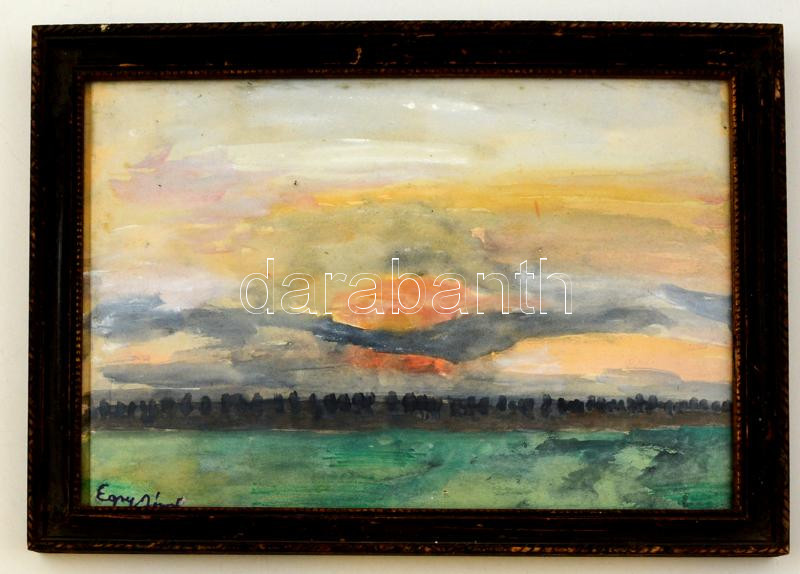 Egry jelzéssel: Naplemente. Akvarell, papír, üvegezett keretben, 22×32 cm