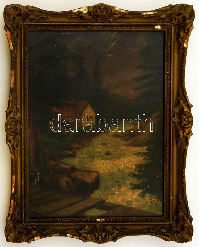 Neogrády jelzéssel: Ház a patak parton. Olaj, karton, sérült, üvegezet...