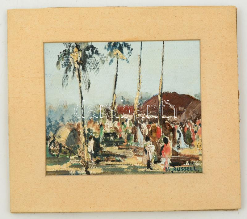 Russell jelzéssel: Piaci forgatag. Olaj, karton, 12×13