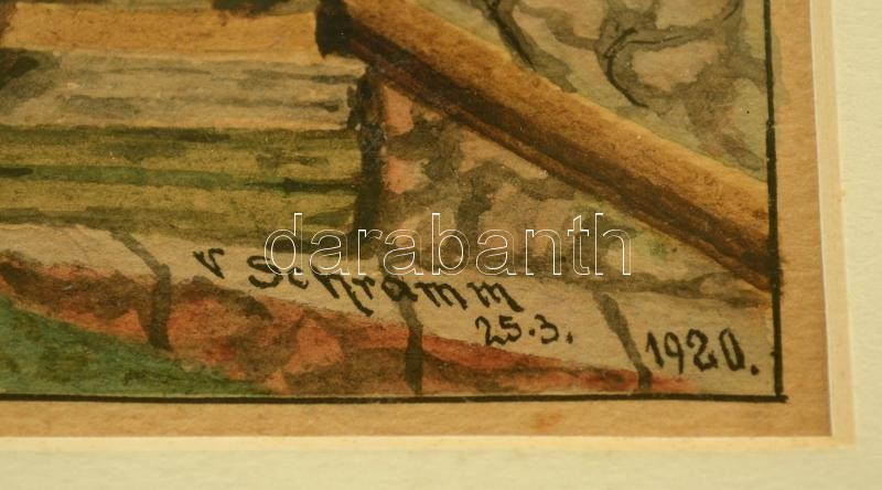 Schramm Viktor (1865-1929): Freudenthali tájkép.Akvarell, papír, jelze...
