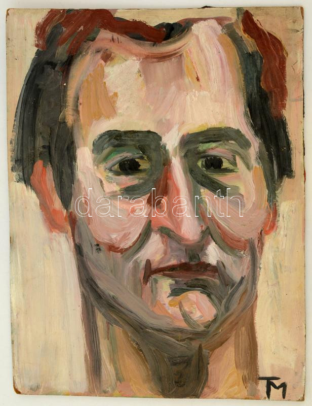 TM jelzéssel: Férfi portré (két oldalas). Olaj, farost, 40×30 cm