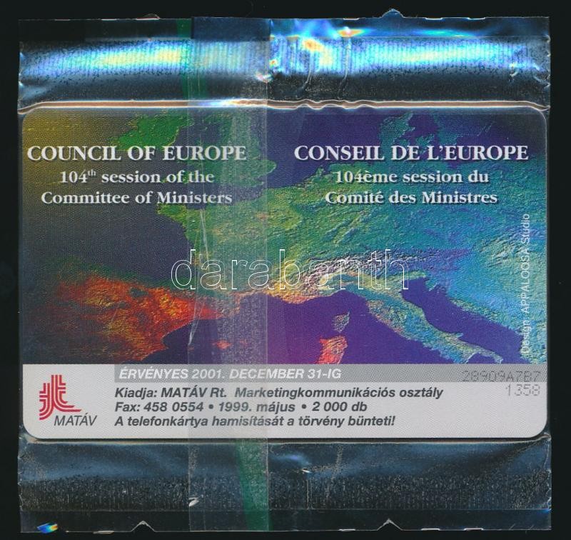 1999 "Európa Tanács" motívumos telefonkártya bontatlan csomagolásban