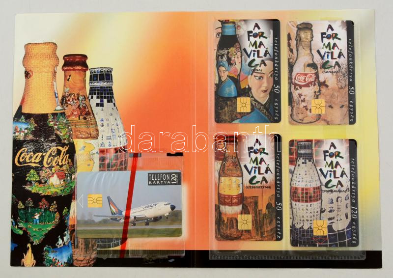 4 db "Coca Cola - A forma világa" telefonkártya, berakóban + 1 db Malé...