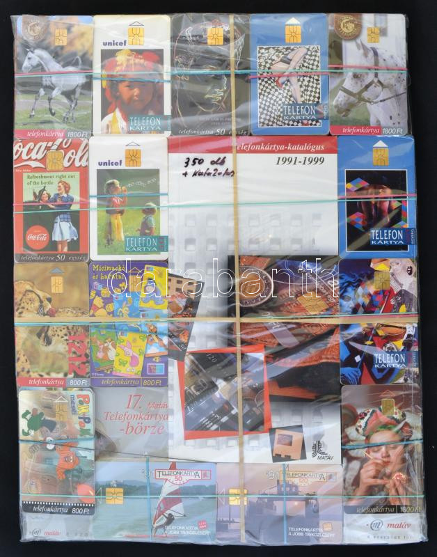 Magyar telefonkártya-gyűjtemény, 350 db, ebből 330 db különböző, közte ritkaságok is + 1 db telefonkártya katalógus 1991-1999