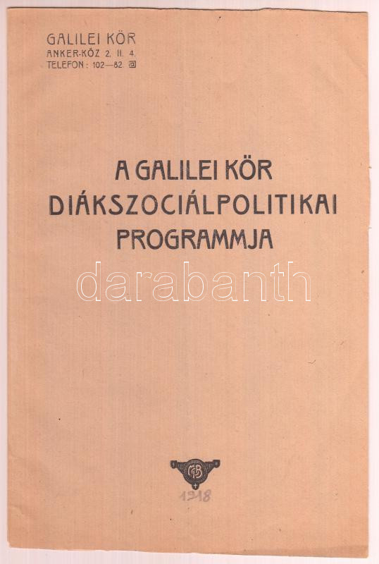 https://www.darabanth.com/en/286-Online-auction/286.0/Other-collectibles/Printed-Materials~27/1918-Bp-Anker-koz-A-Galilei-kor-diakszocialpolitikai-programja-8p~II1498132