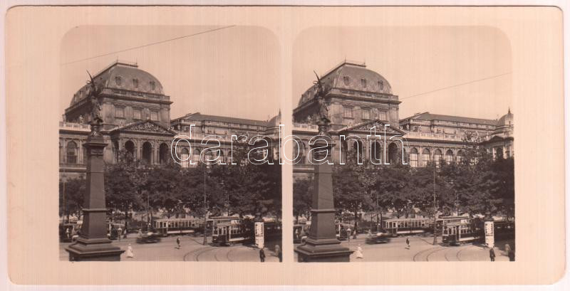 cca 1900 Bécsi egyetem előtt bécsi villamosok, vintage sztereo fotó, 9...