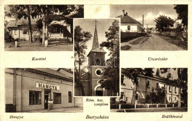 Bustyaháza, Bustino; kaszinó, utcakép, erdőhivatal, Hangya / casino, s...