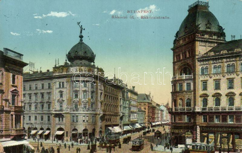 Budapest VII. Rákóczi út és Erzsébet körút, villamosok, Zálogkölcsön i...