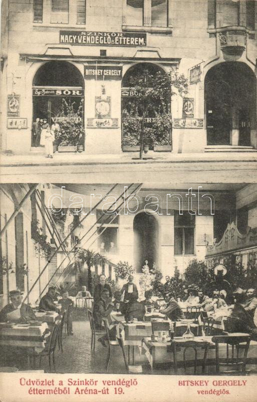 https://www.darabanth.com/en/286-Online-auction/286.0/Postcards/Hungary~200005/Budapest-XIV-Bitskey-Gergely-Szinkor-Nagyvendegloje-es-etterme-belso-Arena-ut-mai-Dozs~II1501507