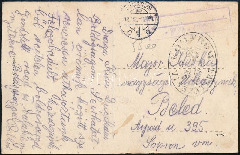 Szentantal, Svaty Anton; Fő utca, Luzsicza János asztalosmester üzlete / Hlavna ulica / street view, shop "1938 Komárom visszatért" So. Stpl