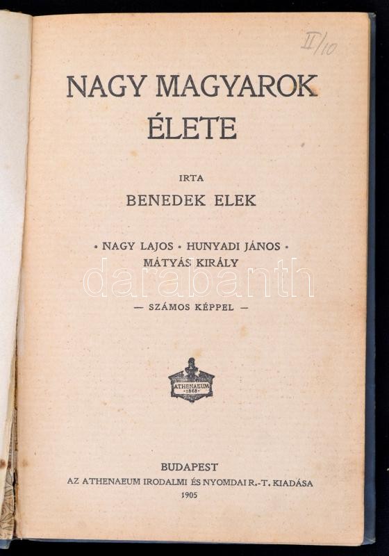 Benedek Elek: Nagy magyarok élete. Nagy Lajos, Hunyadi János, Mátyás k... https://www.darabanth.com/en/287-Online-auction/287.0/Books/Books-Other~100044/Benedek-Elek-Nagy-magyarok-elete-Nagy-Lajos-Hunyadi-Janos-Matyas-kiraly-Bp-1905-Athenae~II1503791