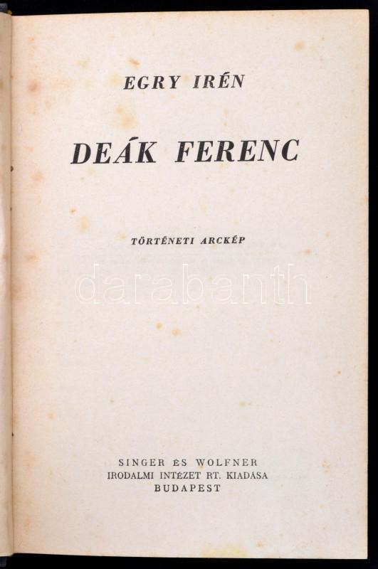 Egry Irén: Deák Ferenc. Történeti arckép. Budapest, 1941, Singer és Wo... https://www.darabanth.com/en/287-Online-auction/287.0/Books/Books-Other~100044/Egry-Iren-Deak-Ferenc-Torteneti-arckep-Budapest-1941-Singer-es-Wolfner-Irodalmi-Intezet-~II1505209