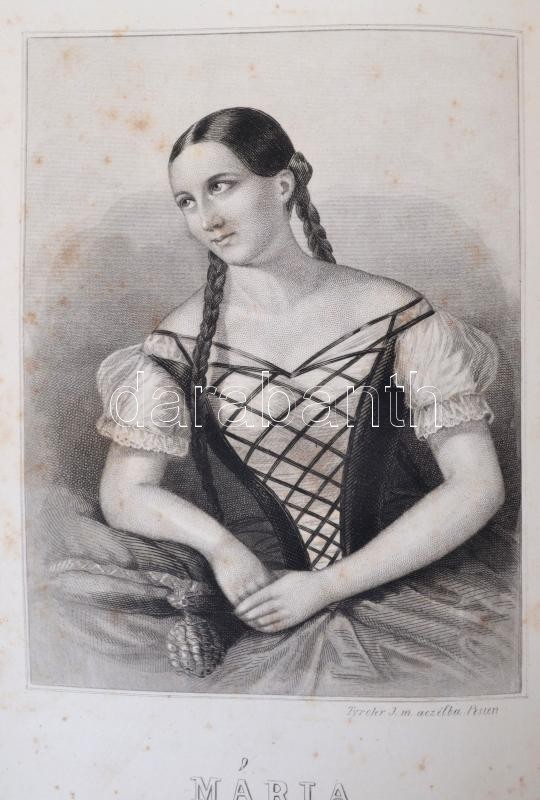 Szikszói enyhlapok. Császár Ferenc szerkesztése. Kiadta Kunsch József. Pest, 1853, Müller Emil Könyvnyomdája, 1 t. (Címkép, Lechi szigetét ábrázoló kőnyomat)+333p.+2 t. (acélmetszet)+8 t. (litografált kotta). Javított aranyozott kopottas egészvászon kötés, megviselt állapotban, javított gerinccel és borítóval, a címkép nyomdahibás, hiányos, foltos lapokkal, pár helyen ceruzás aláhúzással. Az 1852-es szikszói tűzvész áldozatain úgy segített az irodalmi élet, hogy a kötet hasznát átadták a károsultaknak. A szerzők között található többek Egressy Gábor, Fáy András és Arany János. Az acélmetszetek Telepy Károly képei.