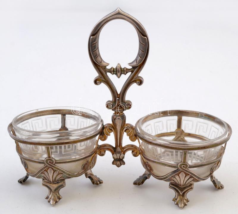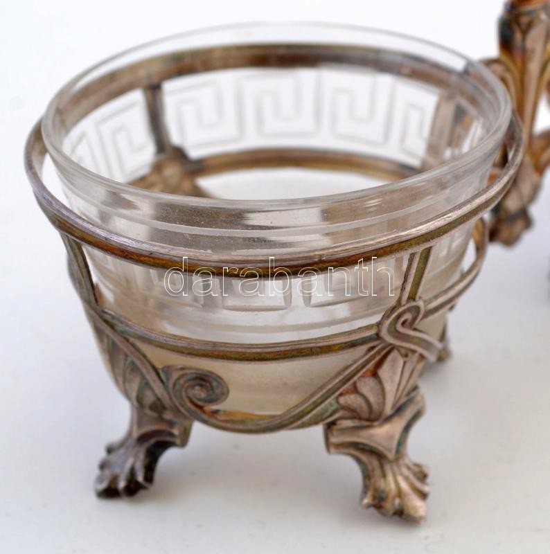 Ezüst (Ag.) francia fűszertartó, eredeti üveg betéttel, jelzés nélkül,...