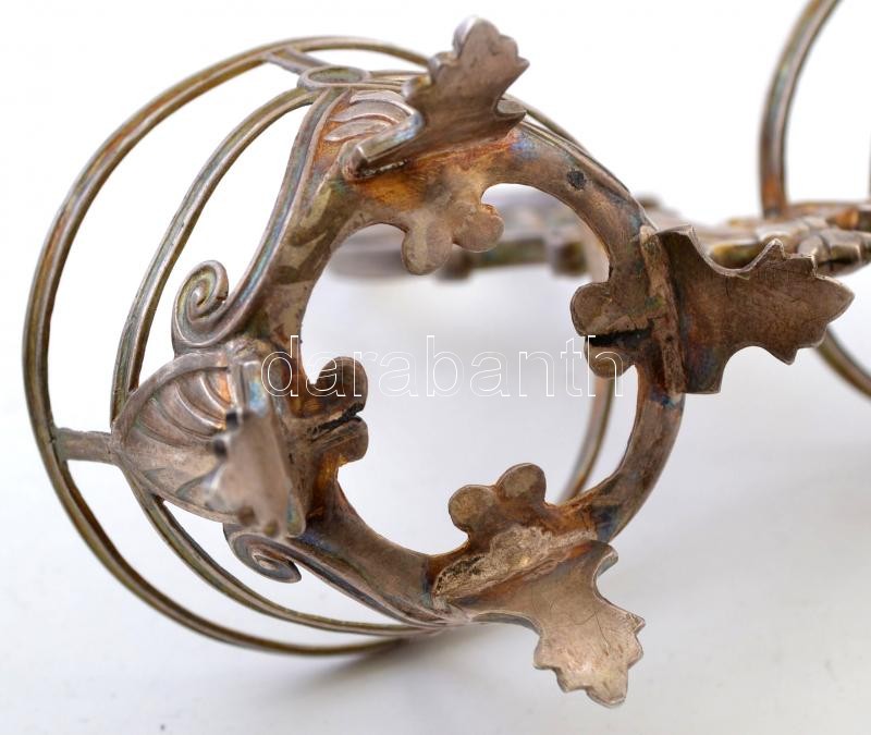 Ezüst (Ag.) francia fűszertartó, eredeti üveg betéttel, jelzés nélkül, h:12 cm, m:9 cm, nettó:54 g