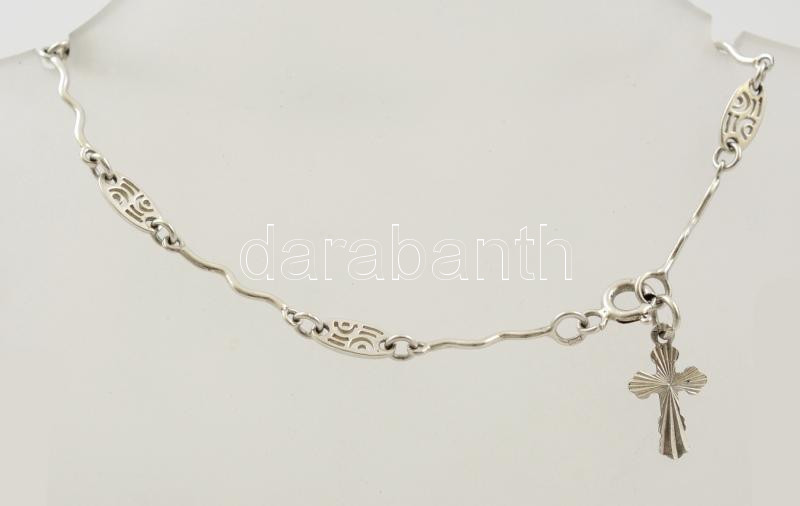 Ezüst(Ag) filigrán karkötő, kereszttel, jelzett, h: 20,5 cm, nettó: 3,2 g