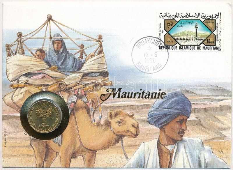 https://www.darabanth.com/en/287-Online-auction/287.0/Numismatics/Envelopes-with-Coins-and-Banknotes~300004/Mauritania-1990-5O-Cu-Ni-Al-forgalmi-penzerme-belyeges-boritekon-14um-es-belyeggel-NOUAKC~II1502742