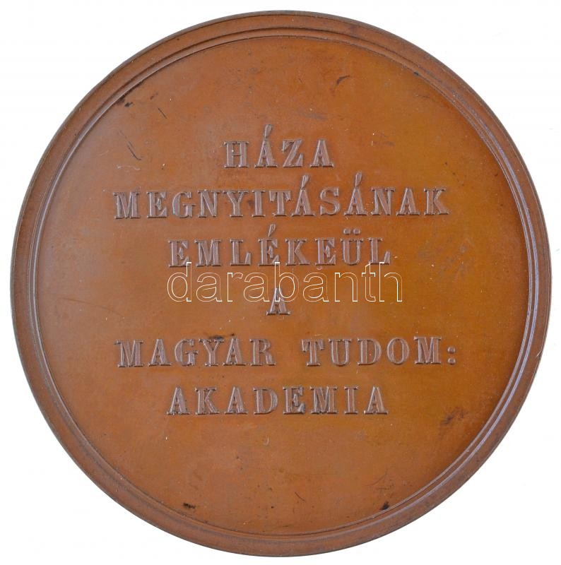 Description: Carl Radnitzky (1818-1901) 1865. "A Magyar Tudományos Akadémia megnyitásának 40. évfordulójára" Br emlékérem. "XI. DEC: MDCCCLXV / HÁZA MEGNYITÁSÁNAK EMLÉKEÜL A MAGYAR TUDOM: AKADÉMIA" (51mm) T:2