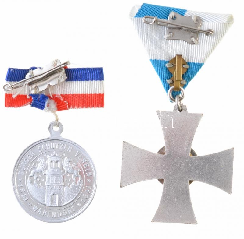 Németország DN "Bajor Veteránok Becsületkeresztje - 20 év" modern, ezüstözött, zománcozott kitüntetés mellszalagon + DN "Polgári Védelmi Egyesület 1841. Warendorf / Egységben az erő" Al érem szalagon T:1-,2