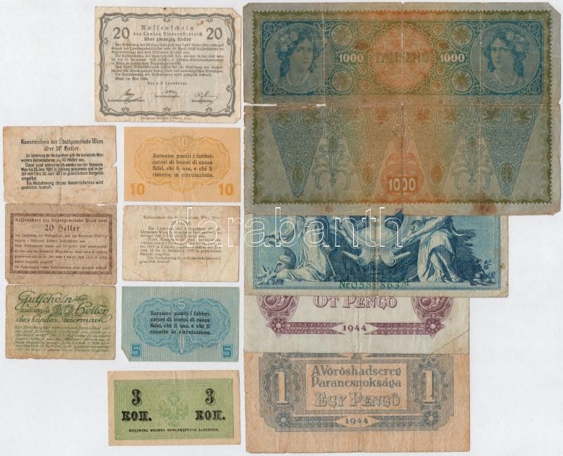 Description: Vegyes: 12db-os bankjegy és szükségpénz tétel, benne Olaszország / Velence / Osztrák-magyar megszállás 1918. 5c + 10c T:III-IV