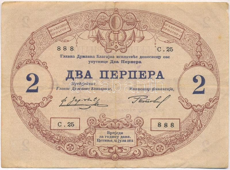 Montenegro 1914. 2 Perpera C:F Krause 16